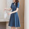 Đầm chữ A Kyeon Fashion cổ sơ mi thắt nơ khuyên
